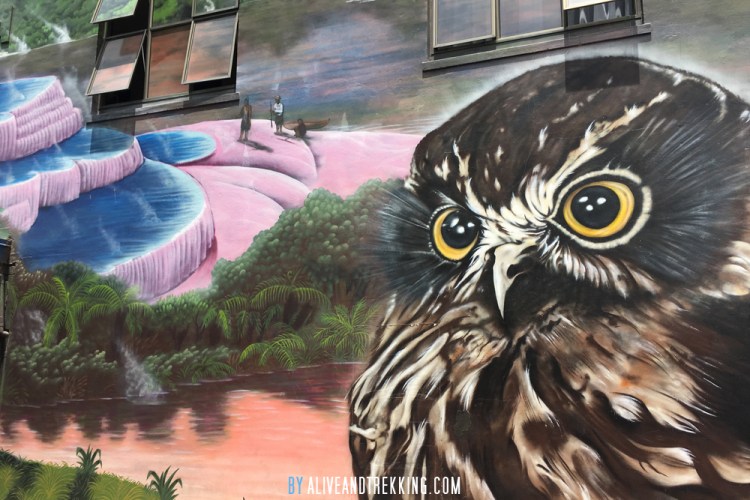 New Zealand street art/murals often depict native wildlife other kiwiana. As a creative person myself (though nowhere near as talented as these artists, haha) this kind of art makes me smile! And the first photo? So fitting, as I can’t seem to stay away from New Zealand! 🙂