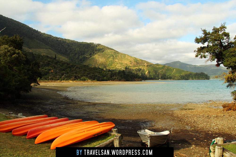 Remember my favourite hostel in New Zealand? Well, here is a photo from Hopewell. Little paradise on earth, if you ask me! The kayaks belong to the hostel. I rented one of those kayaks and had a wonderful but stiff paddle! I went with a roommate, but she didn’t like kayakking at all. She wasn’t holding back in telling me that either. Uh-oh. Well, I do love kayakking! I absolutely love being on the water, it gives me a sense of freedom. And the fact that it was a beautiful sunny day, absolutely helped me feeling fantastic! I really wish I could go back, I miss this place and its stunning beauty!
