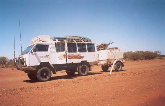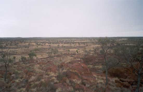 It was January 2003 and there I was in Perth, doing my research and trying to find an organised tour through the outback. And I did! Australian Adventure Travel (not to be confused with Australian Adventure Tours, yech) offered a 6-day organised tour from Perth to Alice Springs, right through the Great Victoria Desert. Perfect! 🙂 Another bonus was the small group of one tourguide and 4 tourists. I don’t remember when in January I did the tour (yikes, memory!), but off we went in a 4WD tough-looking bus/jeep/vehicle/monster. First touristy spot was the Suba Pit, a large open mine in Kalgoorlie. I don’t remember much of Kalgoorlie, just that mine and how dusty it looked. The first three days would be a lot of driving, so on we went.