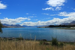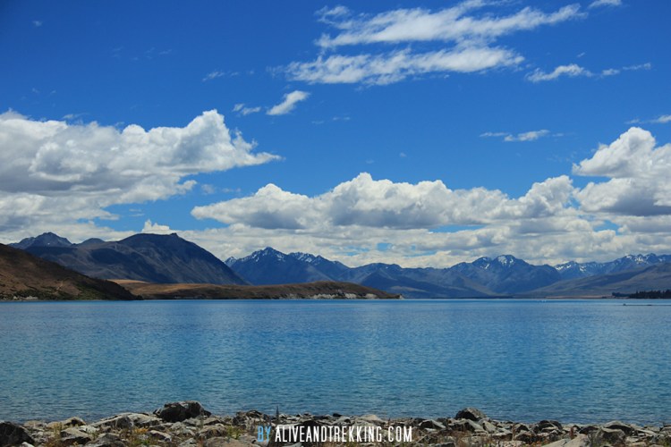 Once through the Lewis Pass, we headed towards Lake Tekapo. It was on our way south anyway, so we just had to squeeze in a visit to see how beautiful it was out there. It was a quick stop, but I remember it being very hot! It was only a short walk from our parking spot to the lake, but we were melting!