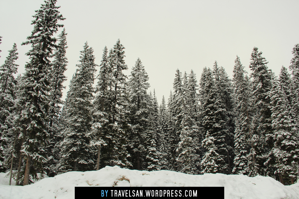 Approaching Lake Louise, Alberta, the landscape turned into the most amazing snowy picture perfect scenery. It felt like we were driving into the set of a Coca-cola commercial or a Christmas postcard. Tall trees covered in the most amazing powdery snow. I had never seen anything like it. Beautiful!