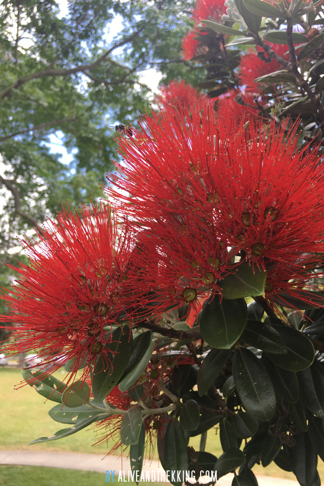 Pohutukawa are so beautiful! When we travelled around New Zealand, we saw many of these trees adorned with beautiful crimson flowers. I took these two photos when we were on a road trip from Hahei via Waiau Kauri Grove to Coromandel Town and then to Whitianga.