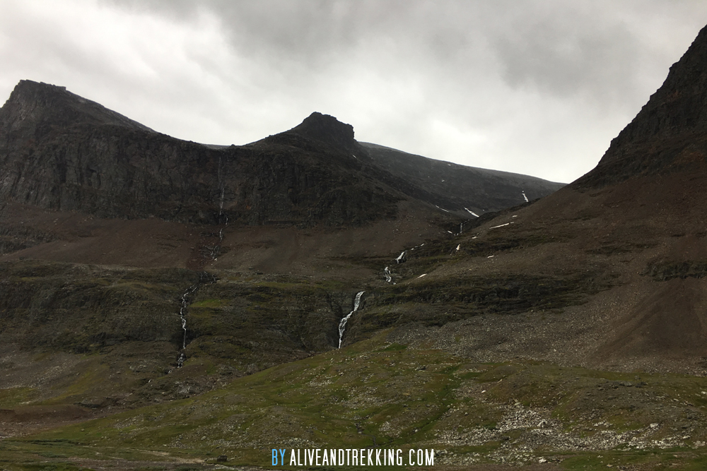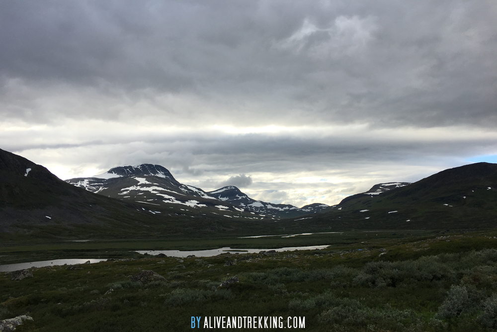 After the downpour of rain on the second day of my Fjällräven Classic adventure, the sky stayed grey for a while. Still gorgeous landscape to trek through! With the sun gone, it was quite chilly, so it was best to just keep moving to stay warm!