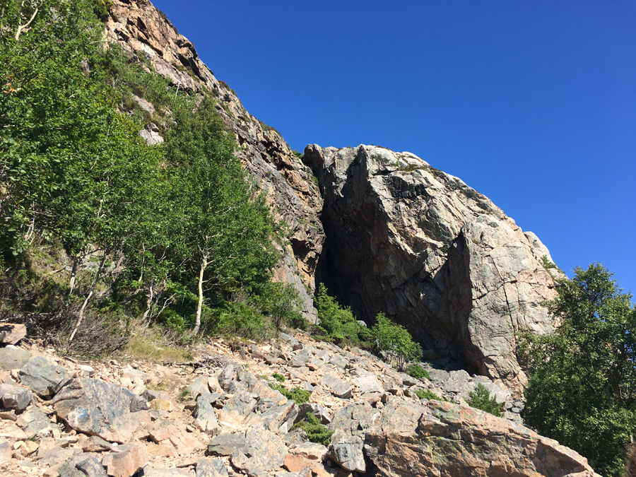 The bright sun and cloudless sky create some cool shadows on the rocks. I also love the blockiness of the rocks juxtaposed the organic shapes of the vegetation.