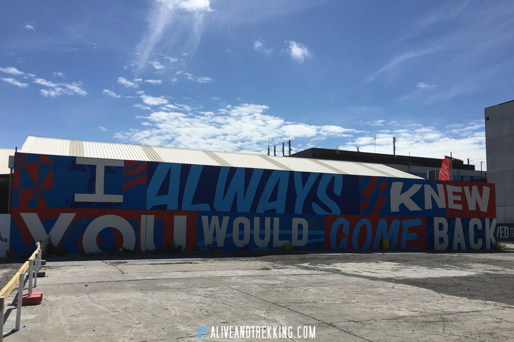 New Zealand street art/murals often depict native wildlife other kiwiana. As a creative person myself (though nowhere near as talented as these artists, haha) this kind of art makes me smile! And the first photo? So fitting, as I can’t seem to stay away from New Zealand! 🙂
